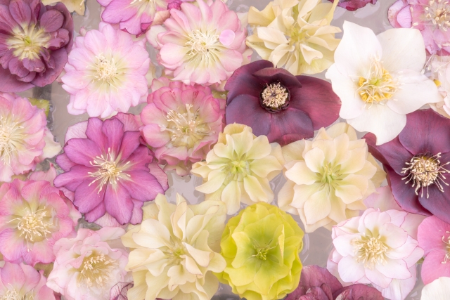 世界各国でクリスマスローズの交配が行われているため、毎年市場に出回る最新品種は実に多種多様。