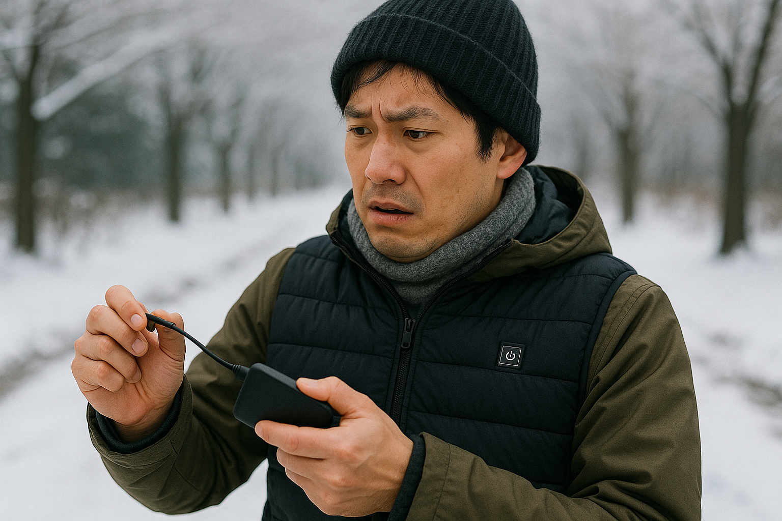 しかし、そんなヒーターベストですが、リチウムイオンバッテリーや電源ケーブル、USBコネクタなどを使用しているため、使っているうちに接触不良、断線などの不具合を起こすこともあります。